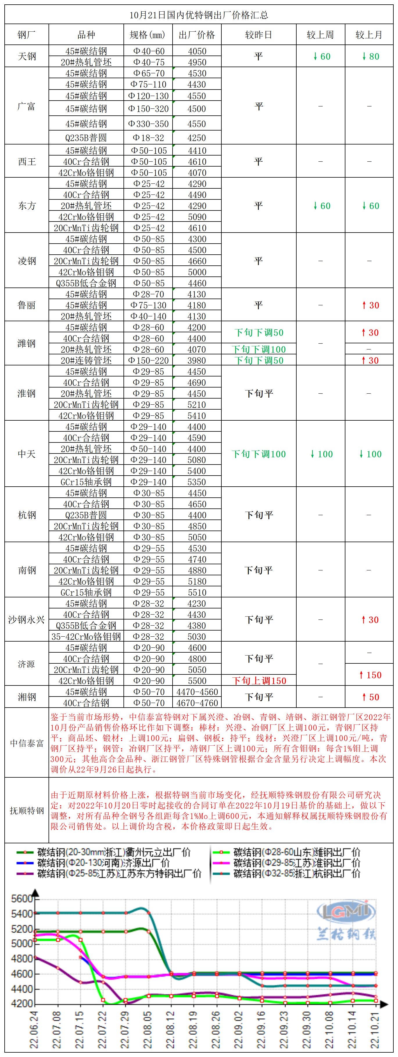 10月21日国内优特钢出厂价格汇总