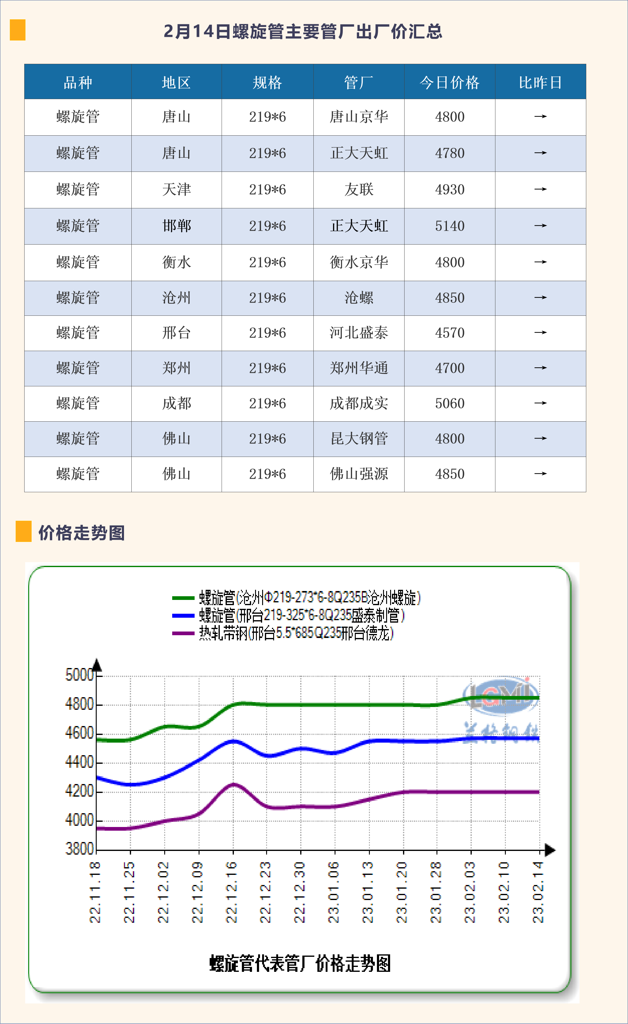 2月14日天津友发钢管集团股份有限公司第一分公司出厂价上调30