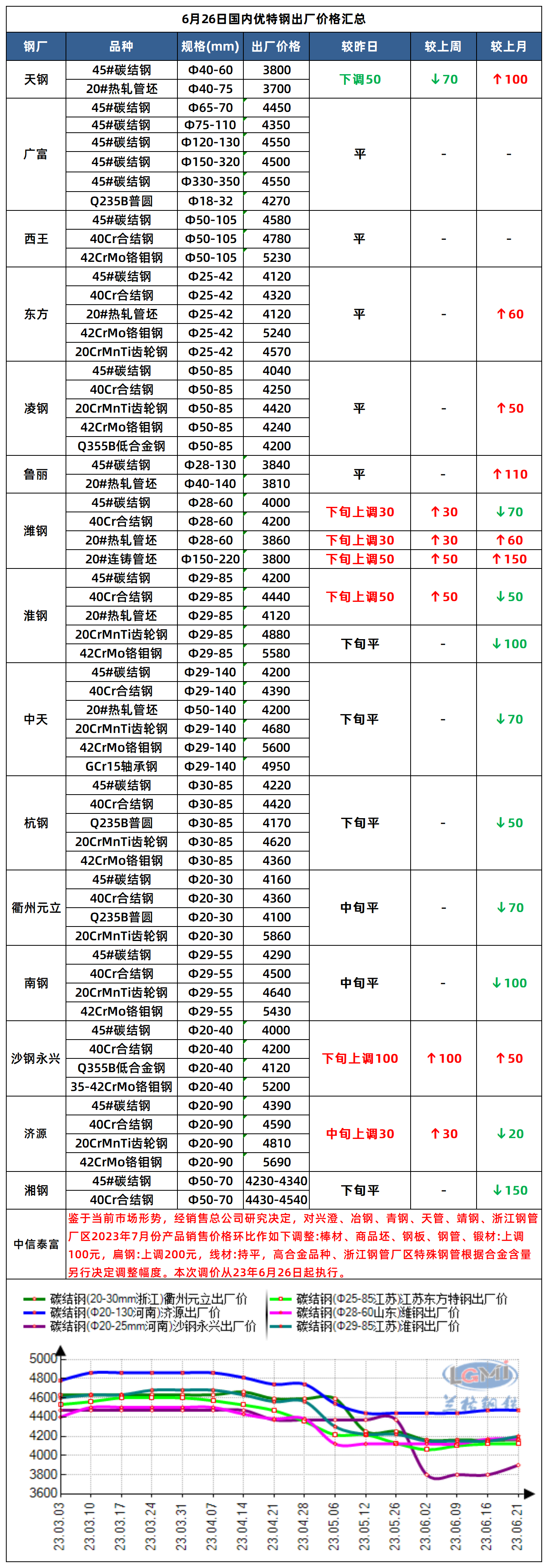 • 6月21日沙钢永兴优特钢出厂价格上调100元