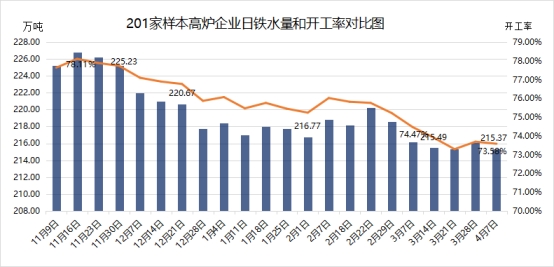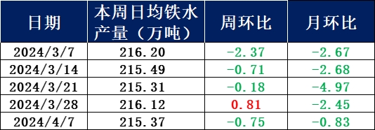 2024年4月7日,据兰格调研,全国201家生产企业铁水日均产量为215.37万吨,周环比减少0.75万吨,总体月环比减少0.83万吨;2月份日均铁水产量均值为218.53万吨,3月日均铁水产量为215.78万吨,4月日均铁水产量为215.37万吨,从数据来看,目前全国钢企铁水日产量有所减少,随着部分高炉进入检修期,钢厂铁水产量小幅减少。 本周钢厂日铁水产量较上周有所减少,其中华北、华东区域部分高炉重启,铁水产量有所增加,华南、西南、华中等区域日铁水产量有所降低,其他区域日铁水产量变化不大。 钢企利润面中厚板稍,热卷和螺纹次之,部分钢厂对有新增中厚板轧线计划,目前已有部分铁水产量流入新轧线,钢企建材铁水产量进一步减少。近期终端需求持续偏弱,对各品种需求量偏弱,社库持续处于偏高水平,但近两周社库有下降趋势,外加期货盘面止跌,对成品材市场稍有支撑,目前宏光政策导向性不强,钢企铁水大多根据利润面调整。