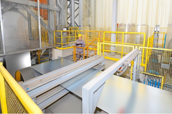 10月23日,河钢集团唐钢公司高强汽车板有限公司职工正在检查工艺优化后的深冲钢表面质量。