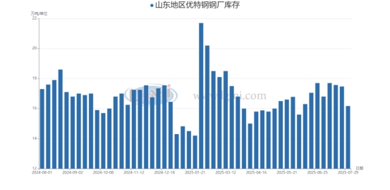 据兰格钢铁网调研,山东7家样本优特钢厂棒材总库存16.17万吨,较上周减少1.3万吨,周环比下降7.44%。本周山东地区多数钢企端报价多持稳为主,目前优特钢市场交易氛围略显平淡,钢企端多按部就班随行就市为主,实单买卖在如此中零星体现,厂内库存阶段性小幅去库。 |
