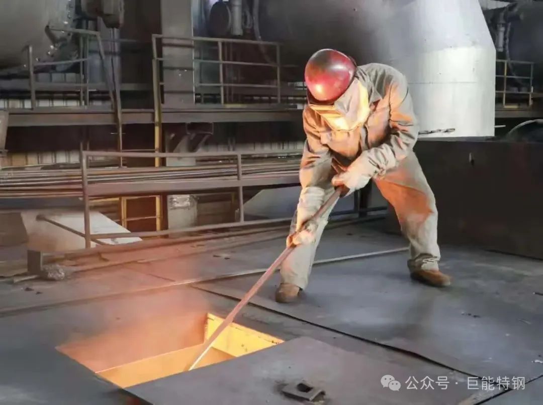 质检部岗位人员正在对钢材表面进行认真检查和打磨处理,铺着“钢材”的地面仿佛在燃烧,穿着劳保鞋走在上面,仍能明显感到脚底的灼热。