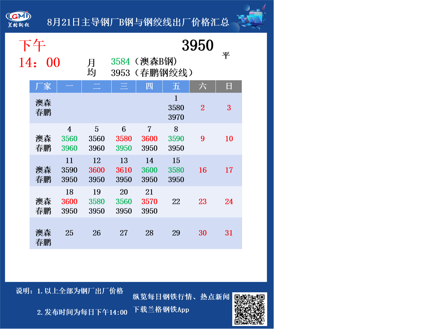 • 8月21日主导钢厂B钢与钢绞线出厂价格