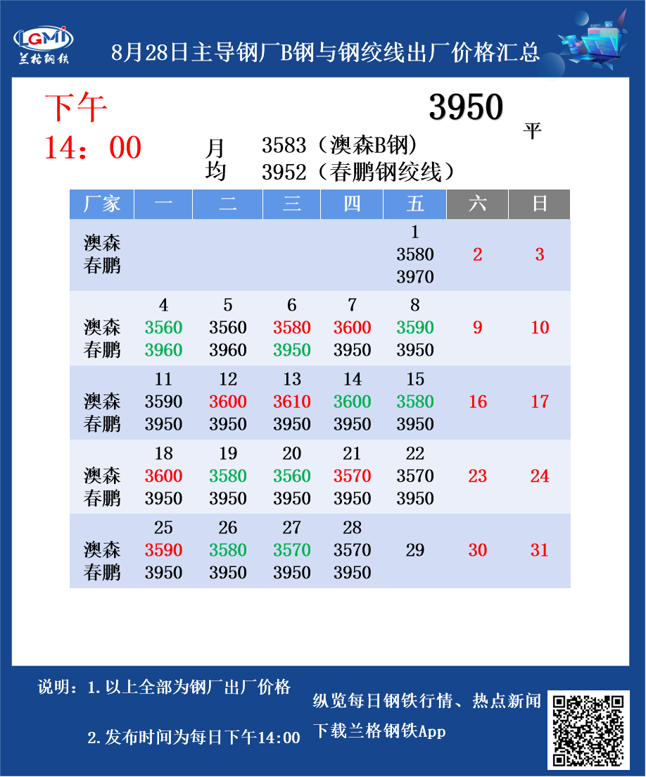 • 8月28日主导钢厂B钢与钢绞线出厂价格