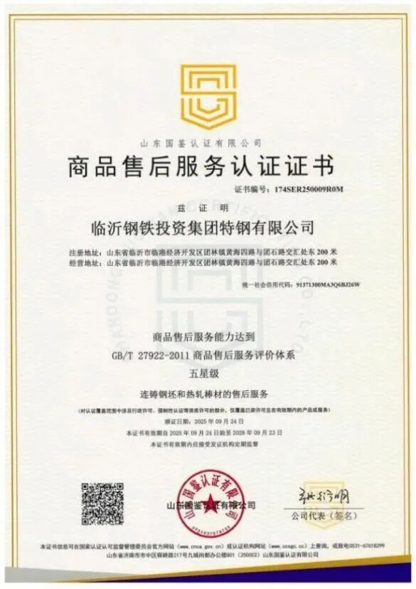 近日,特钢公司在售后服务领域获得权威认可,成功通过“连铸钢坯和热轧棒材售后服务”五星级认证。该认证基于服务体系完整性、响应效率、问题解决能力、客户反馈及持续改进等多维度综合评定,是衡量企业售后服务水平的最高荣誉,标志着特钢公司在产品全生命周期服务体系建设方面走在了行业前列。