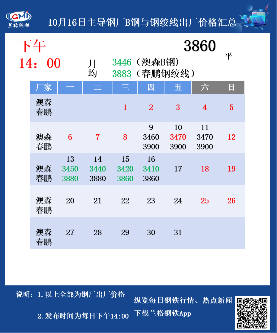 • 10月16日主导钢厂B钢与钢绞线出厂价格