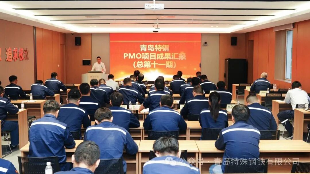 近日,青岛特钢召开PMO项目(总第十一期)成果汇报会。青岛特钢党委书记、总经理孙广亿出席会议,副总经理王海波、总工程师黄镇、总经理助理宗浩,以及部分生产厂和职能部门负责人、各项目组成员与生产骨干代表参加会议。