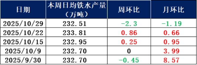 2025年10月29日,据兰格调研,全国201家生产企业铁水日均产量为232.51万吨,较上周减少2.3万吨,总体月环比减少1.19万吨;25年8月日均铁水产量为230.88万吨,9月日均铁水产量为230.14万吨,10月日均铁水产量为232.74万吨。 本周铁水总量较上周有所减少,主要受秋冬季环保限产政策影响,华北区域铁水量有所减少,其中域内新增3座高炉停产检修、3家企业减产以及2座高炉焖炉;而华东及西南区域前期1座检修停产高炉恢复生产及2家生产企业增产影响,铁水总量较上周有所增加;其他区域铁水总量则较上周暂无变动。