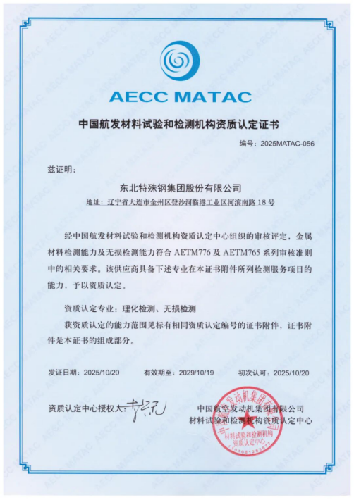 中国航发材料试验和检测机构资质认定中心是中国航空发动机集团有限公司为了规范材料试验和检测机构管理,提高检测水平和质量,确保航空发动机材料安全性和可靠性而设立的一项资质认定制度。该认定过程严格、全面,涉及多个技术领域的审核与评估,包括金属材料检测能力、无损检测能力以及实验室管理体系等多个方面。 获得航发资质认定证书,不仅标志着东特股份在航空发动机材料检测领域的技术能力和质量管理水平达到行业高标准,获得权威认可,也为后续开展相关检测工作奠定坚实基础,进一步提升公司的品牌形象和市场竞争力。 在资质认定过程中,东特股份充分展示了在航空发动机相关领域的专业能力和技术水平,完善的研发和生产体系、先进的检测手段和质量控制方法,能够确保检测服务的稳定性和可靠性。特别是在资质认定准备阶段,公司中心试验室团队将技术突破贯穿于每一个关键环节,深度对标航发行业最高标准,完成试验方法确定与开发,对精密检测设备开展精度校准与稳定性测试,从对航发AETM776、AETM765准则的深入学习,到组织全员参与专业培训,每一个环节均严格对标行业顶尖标准,以高标准完成全流程审核。 在涵盖金属材料力学性能、物理性能、化学成分分析、无损探伤等关键领域的检测中,涉及到的试验方法全部一次性通过审核,不仅展现了公司中心试验室检测技术的系统性和可靠性,更验证了试验室团队在复杂检测项目自主攻关能力,为公司成功通过中国航空发动机集团的严格审查提供了坚实保障。 东特股份将继续保持高水准、严标准的检测服务,在航空航天产品技术研发、产品升级方面提供更全面、更专业的检测服务,为国家航空航天行业高质量发展贡献技术力量。 |