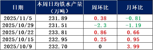 2025年11月5日,据兰格调研,全国201家生产企业铁水日均产量为231.89万吨,较上周增加0.38万吨,总体月环比减少0.81万吨;25年9月日均铁水产量为230.14万吨,10月日均铁水产量为232.74万吨,11月日均铁水产量为231.89万吨。 本周铁水总量较上周有所增加,主要增量集中在东北、华北及华中区域,域内1座检修高炉恢复生产、2家企业增产及1座高炉结束焖炉恢复正常生产,使得域内铁水总量较上周增加;而西北区域新增2座高炉检修停产,使得域内铁水总量较上周减少,其他区域铁水总量则较上周暂无变动。