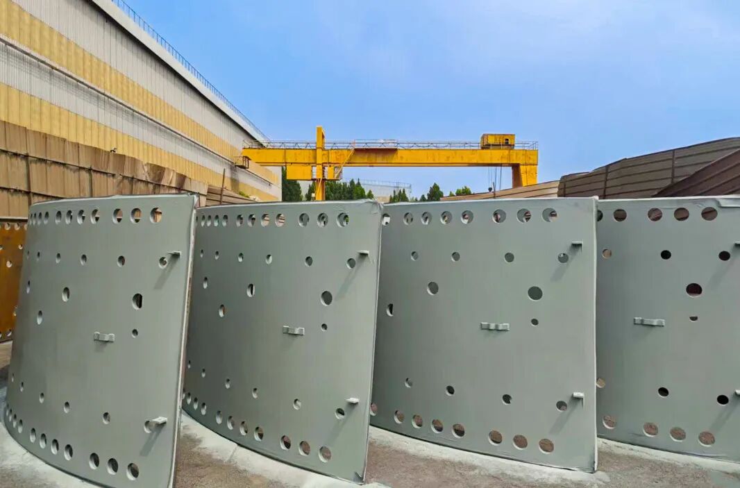 大直径薄壁筒体件因结构壁薄、直径大的特点,在焊接、热处理及机加工过程中,极易产生不均匀性变形,严重影响产品尺寸精度与结构可靠性,如何有效防止大直径薄壁筒体件变形成为行业技术难题。此次高炉项目单套炉壳重量达200吨、直径超过9米,且材料力学性能、焊接变形控制和整体圆度等方面要求极为严苛,给生产制造带来更大挑战。 为破解行业技术难题,大河装备成立技术攻关团队,围绕制造全流程开展系统性工艺创新。通过优化焊接顺序、工艺参数及热处理技术,对制造工艺链实施深度优化与精密调控,显著降低变形风险;改进卷制成型工艺,将筒体周长偏差严格控制在±2毫米以内。通过一系列攻关举措,破解了大直径薄壁筒体不均匀变形控制这一行业技术难题,实现下线炉壳组对精度、尺寸公差和焊接质量等核心指标均优于设计标准。 |