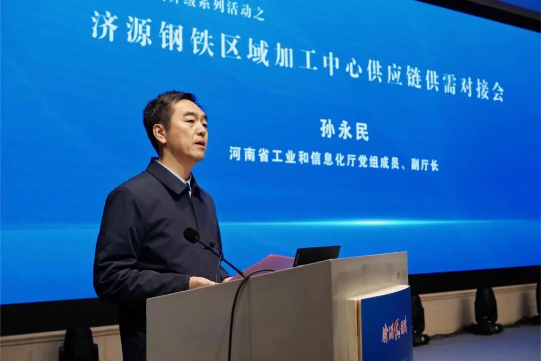 11月19日,河南省钢铁产业提质升级系列活动在郑州启动,首场活动聚焦济源钢铁区域加工中心供应链供需对接,由河南省工业和信息化厅、济源产城融合示范区管理委员会主办,河南济源钢铁(集团)有限公司承办,旨在搭建钢铁生产企业与装备制造等上下游企业间的供需对接平台,实现资源共享与协同创新,推动河南省钢铁产业加快提质升级步伐。省工业和信息化厅党组成员、副厅长孙永民,济源示范区管委会主任、市长秦保建,济源钢铁集团党委书记、董事长李玉田出席活动并致辞。来自卡特彼勒、中国重汽、洛轴、郑煤机、慕贝尔、一汽锻造、洛阳新强联、中国一拖、东风锻造、三一集团、巨力索具等国内外140余家产业链重点企业、行业协会及媒体代表约350人参会。