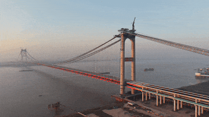 挑战极限:2100兆帕, 强与韧兼备的“材料黑科技” 燕矶长江大桥创新采用四主缆设计,对钢丝的强度、耐腐与抗疲劳性能提出“地狱级”挑战。青岛特钢凭借深厚技术底蕴,一举突破极高强度下韧性与耐久性的技术壁垒,为大桥实现1860米超大跨度打下坚实基础。每一根钢丝,都是冶金工艺、微观组织与表面处理技术的“巅峰之作”! 力鼎千钧:编织“桥之脊梁”, 能拉动6艘航母的“隐形英雄” 大桥的四根主缆,堪称“桥之脊梁”,由数万根高性能钢丝精密编织。青岛特钢提供的2100兆帕级钢丝,实力不凡——单根主缆极限拉力高达约7万吨,四根主缆总拉力突破28万吨!这一惊人承载力,不仅能轻松吊起上百架A380客机,甚至能同时拉动6艘中型航母,堪称“大力奇迹”!