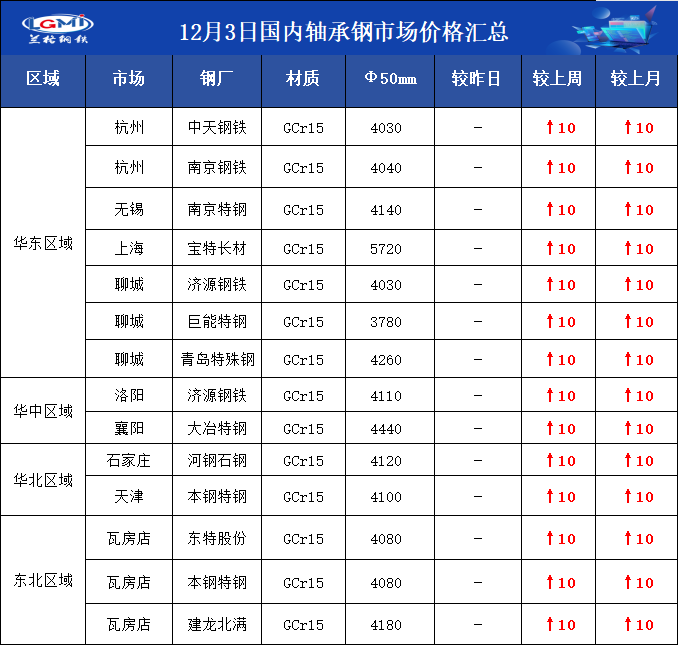 • 12月3日国内轴承钢市场价格汇总