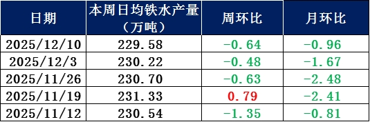 2025年12月10日,据兰格调研,全国201家生产企业铁水日均产量为229.58万吨,较上周减少0.04万吨,总体月环比减少0.96万吨;25年9月日均铁水产量为230.14万吨,10月日均铁水产量为232.74万吨,11月日均铁水产量为231.12万吨,12月日均铁水产量为229.6万吨。 从数据可见,本周铁水总量较上周微降,整体开工率环比也处于下降趋势,但下降幅度较小,显示出大部分钢厂仍保持相对稳定的生产节奏。具体来看,本周新增检修高炉主要集中在华东及西北区域,多为中小容积高炉,检修原因多与设备常规维护、环保限产以及部分钢厂阶段性调整生产计划有关。而大型钢厂方面,多数仍维持满负荷生产状态,铁水产量保持高位,对市场资源供应形成持续支撑。从后续检修计划来看,临近年底,加之现阶段行情偏弱势,部分钢厂可能会根据年度生产目标及市场需求情况,对高炉生产进行微调,但预计整体检修规模不会出现大幅增加,短期内全国高炉开工率或继续维持在75%-76%的区间窄幅波动。
