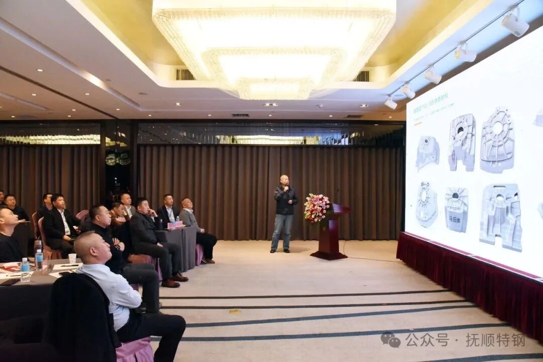 12月9日,2025年抚顺特钢工模具钢市场服务交流会在抚顺友谊宾馆召开。会议旨在总结2025年抚顺特钢工模具钢内贸工作,做好2026年工模具钢国内主要经销商协议协商、提高内贸渠道协调管控效力、推进工模具钢新产品开发与推广等工作。抚顺特钢董事长、总经理孙立国,第一副总经理穆立峰,副总经理崔鸿及生产、技术、销售条线相关人员;钢铁研究总院、东北大学专家学者;深圳兆恒、华氏公司、浙江抚特等18家经销商代表共计80余人参加会议。会议由抚顺特钢销售公司总经理助理郭继春主持。