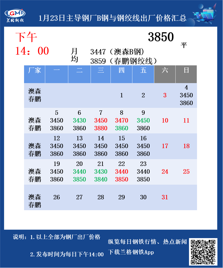 • 1月23日主导钢厂B钢与钢绞线出厂价格