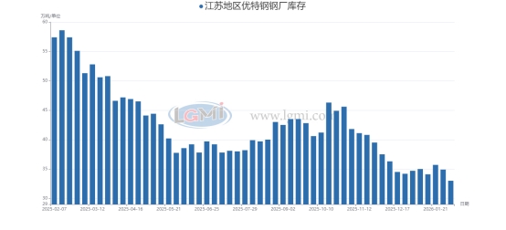 据兰格钢铁网调研,江苏6家样本优特钢厂棒材总库存33万吨,较上周减少1.9万吨,周环比下降5.44%。本周江苏地区优特钢企供应端,缩减普通棒材产量,优先保障高端适配规格。下游终端企业赶制节前订单,多领域刚需共振,成为去库核心动力,尤其高端品种去库节奏顺畅。贸易端,市场情绪平稳,主动承接钢厂资源意愿明显提升,无低价货源扰乱市场,有效消化钢厂新增供应。综上,下游集中备货、钢厂精准调控与贸易商积极承接形成协同,推动库存大幅下降,当前库存水平可控,贴合节前优特钢市场去库收尾的运行特征。 |