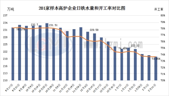 2026年2月11日,据兰格调研,全国201家生产企业铁水日均产量为219.92万吨,较上周减少0.62万吨,总体月环比减少3.7万吨;25年12月日均铁水产量为227.61万吨,26年1月份日均铁水产量为222.71万吨,26年2月份日均铁水产量为220.23万吨。 从数据可见,本周全国主要钢铁企业高炉开工率延续小幅下降态势,表明钢厂生产节奏略有放缓,部分钢厂因临近春节假期,主动降低生产负荷以应对节前市场需求萎缩的情况,分区域来看,本周华北、华南地区各新增1座高炉检修,其他地区暂无明显变化,从钢厂检修情况来看,目前检修多以中小高炉为主,大型高炉开工基本正常,按当前各地钢厂反馈情况来看,春节长假期间暂无集中检修或大面积停产的计划。综合来看,当前钢厂整体生产仍保持一定规模,随着春节假期临近,钢厂排产计划将逐步向节日期间过渡,部分企业可能会根据自身库存及订单情况,对生产计划进行微调,以平衡市场供需,在需求尚未出现实质性回暖信号前,钢厂大幅增产的动力不足,高炉开工率预计将在现有水平附近震荡运行。