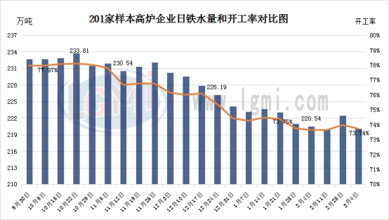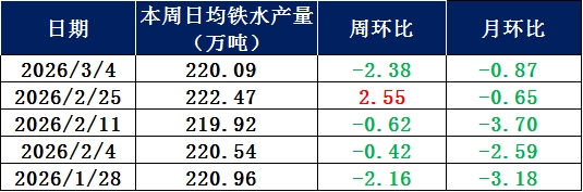 2026年3月4日,据兰格调研,全国201家生产企业铁水日均产量为220.09万吨,较上周下降2.38万吨,总体月环比下降0.87万吨;26年1月份日均铁水产量为222.71万吨,26年2月份日均铁水产量为220.97万吨,26年3月份日均铁水产量为220.09万吨。 从数据可见,本周全国高炉开工率呈现小幅回落态势,检修停产高炉数量及容积均有增加,表明部分钢厂在市场需求恢复不及预期、库存压力持续高企的背景下,开始适度调整生产节奏。从检修原因来看,本周新增检修高炉主要集中在华北地区,考虑到本周即将召开“重要会议”,京津冀及周边地区环保限产政策趋严,部分钢厂被动采取阶段性限产措施,不过目前尚未形成大规模减产态势,整体供应端收缩幅度相对有限。从钢厂心态来看,大部分钢厂对后市需求恢复仍持谨慎乐观态度,若后期下游需求复苏进度有所改善,不排除各地钢厂将加快复产节奏,高炉开工率或将重回上升通道。
