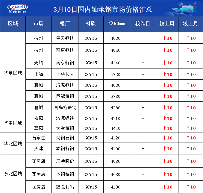 • 3月10日国内轴承钢市场价格汇总