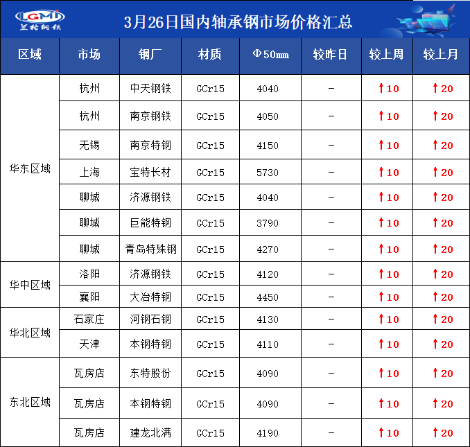 • 3月26日国内轴承钢市场价格汇总