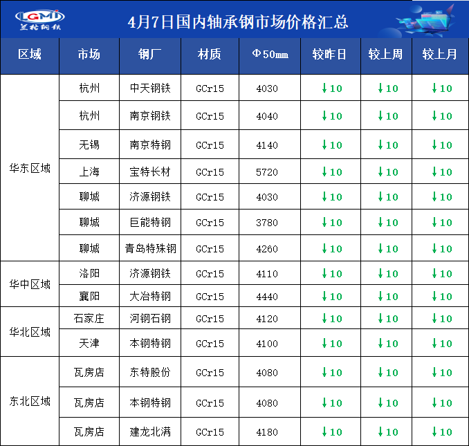 • 4月7日国内轴承钢市场价格汇总