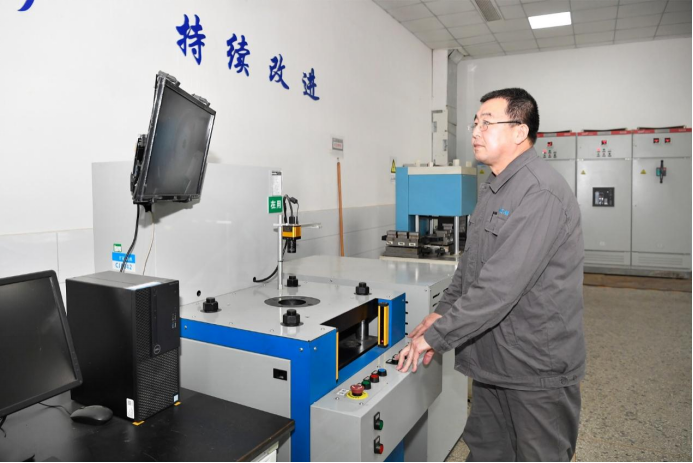 4月10日,河钢集团唐钢公司技术质量部职工正在检测高强汽车钢扩孔率。